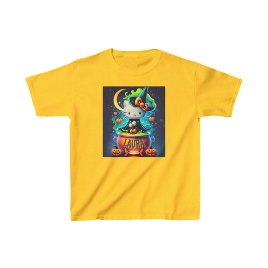 Personalized Halloween Hello Kitty Kids Heavy Cotton™ Tee – Custom Name Witch Design