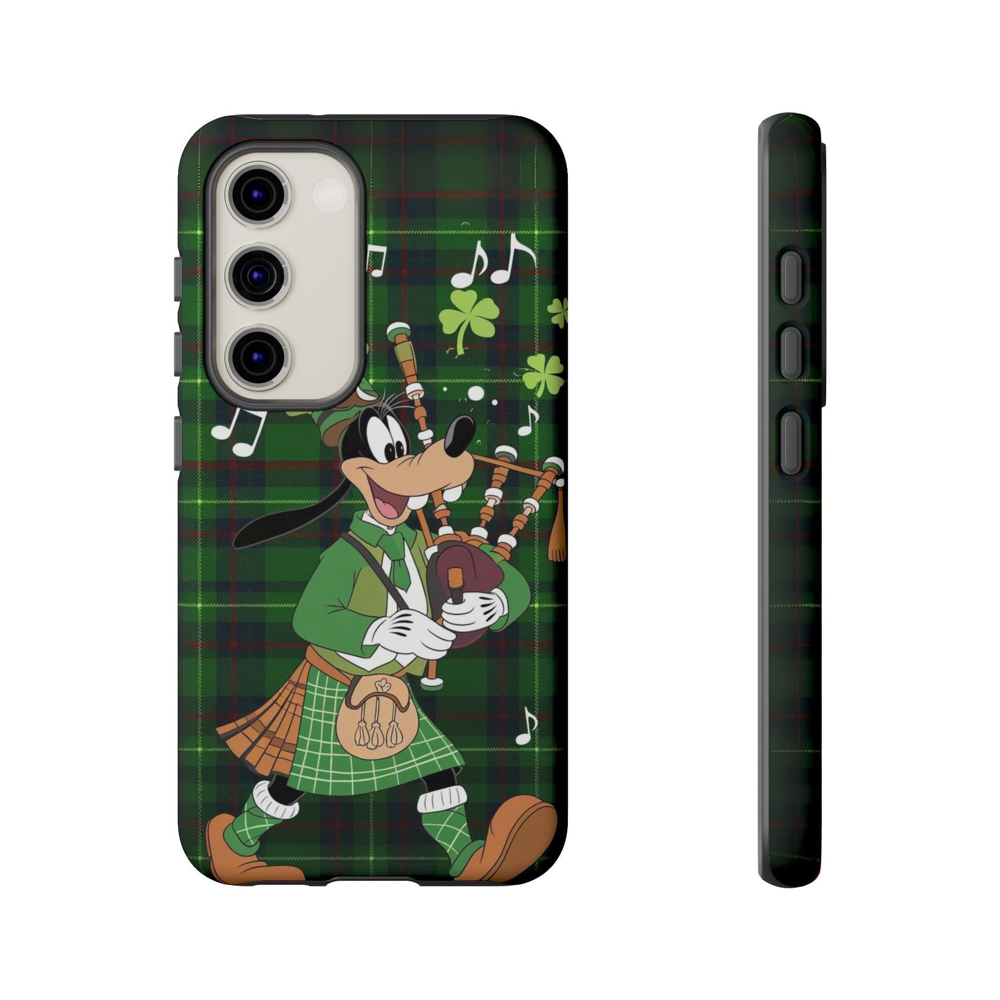 Get ready for some St. Patrick's Day fun with Goofy! This unique phone case features Goofy dressed in traditional Scottish attire, playing the bagpipes amidst shamrocks and musical notes. The festive plaid background adds an extra touch of Irish spirit. Made with durable materials, this case provides reliable protection against bumps, scratches, and drops, keeping your phone safe while you celebrate. A perfect gift for Disney fans and anyone who wants to add a touch of Irish whimsy to their phone!