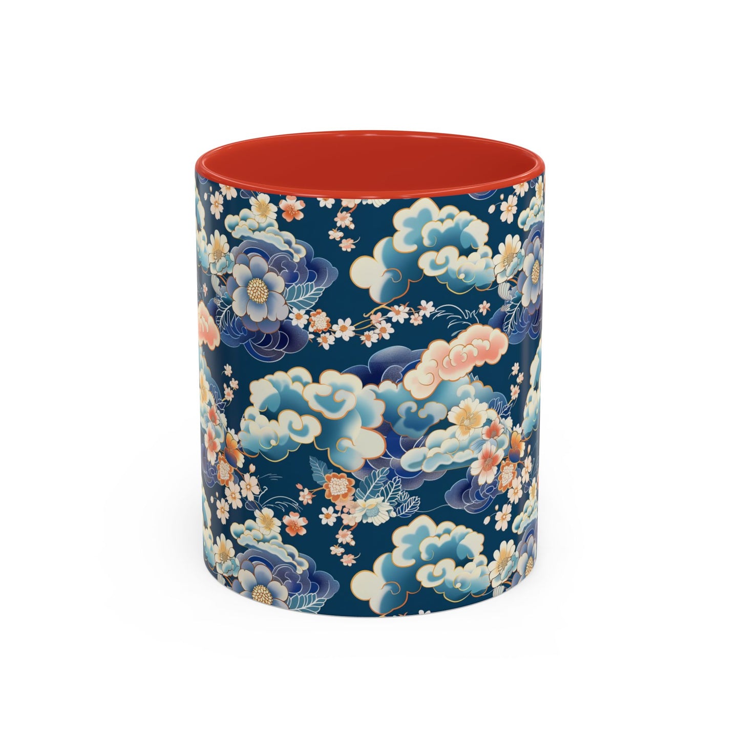 Elevate your coffee or tea ritual with this stunning Japanese-inspired ceramic mug. Featuring an intricate design of traditional floral patterns and elegant swirling clouds on a deep navy background, this mug brings a touch of artistry to every sip. The vibrant red interior adds a bold contrast, making it a statement piece in any kitchen or office. Whether you're a tea lover, coffee enthusiast, or a fan of Japanese aesthetics, this premium-quality mug is perfect for daily use or as a thoughtful gift.