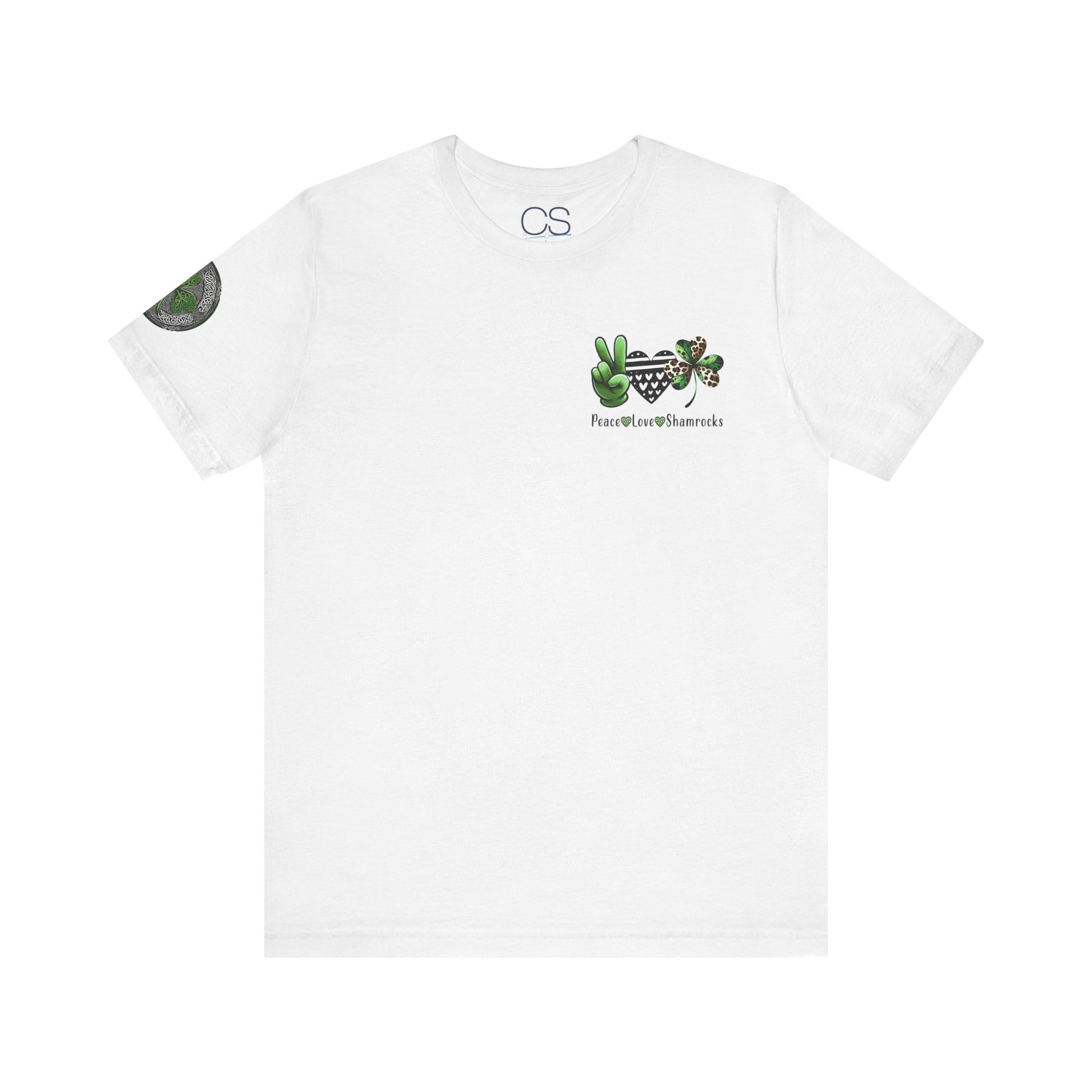 Farm Fresh Four Leaf Clover T-Shirt | Peace Love Shamrocks Double-Sided Design | St. Patrick's Day Vintage Style Tee