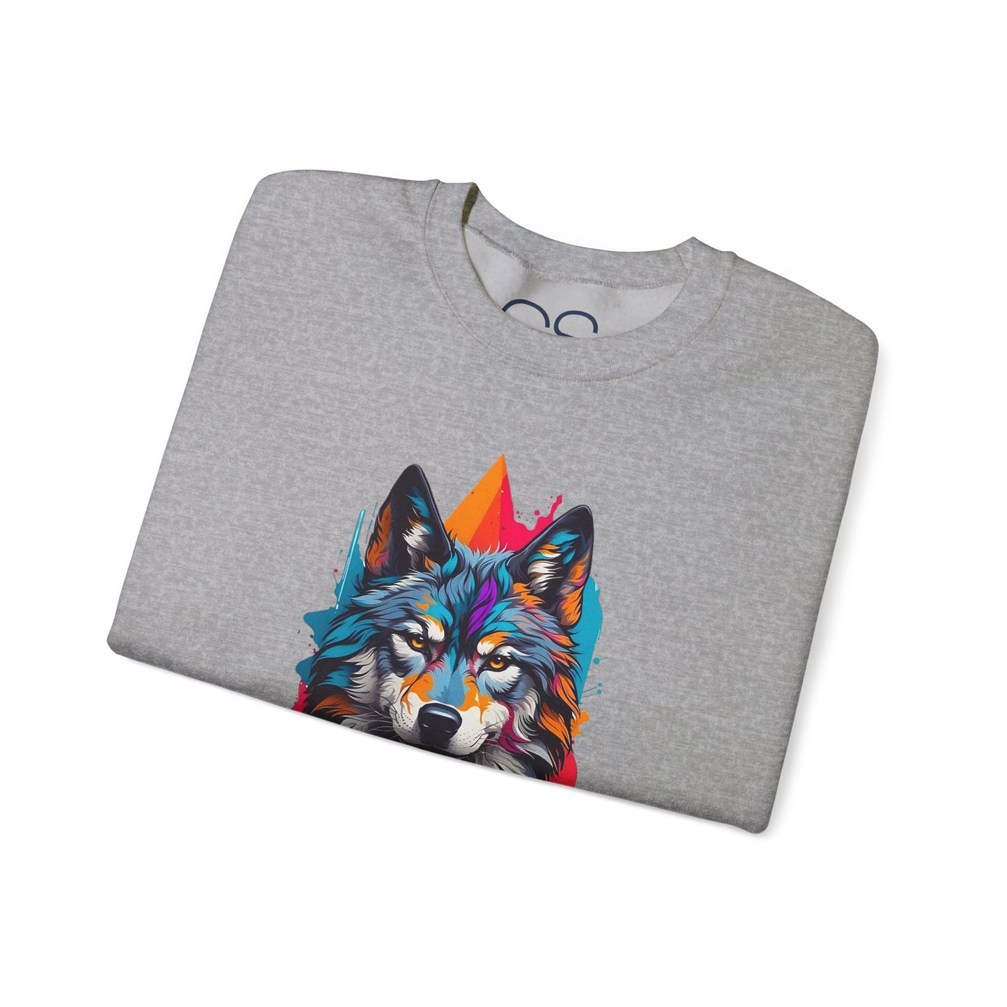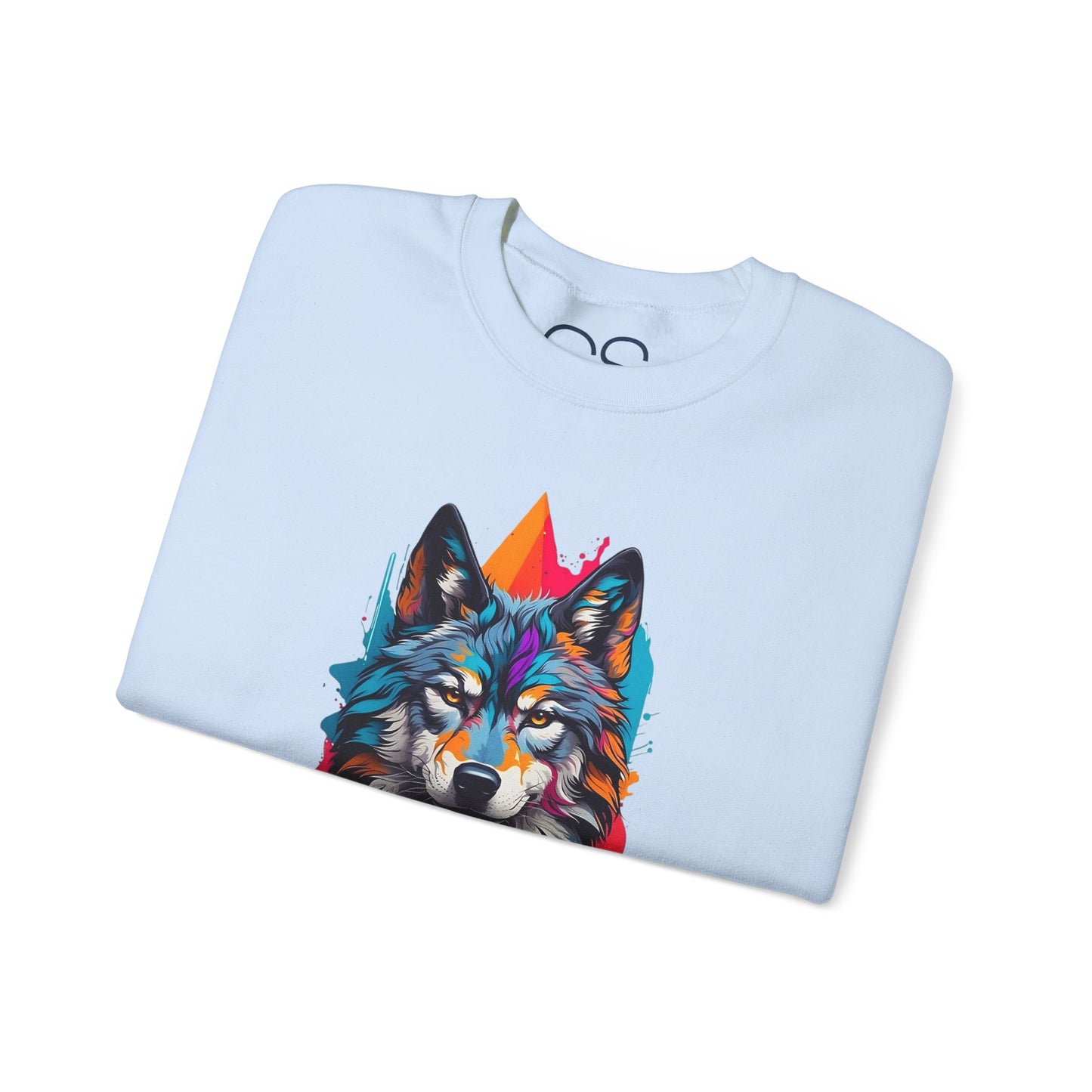 Make a bold statement with our eye-catching Wolf Art Crewneck Sweatshirt. Featuring a stunning watercolor-style wolf design in vibrant blues, reds, and oranges, this sweatshirt perfectly balances artistic expression with comfortable casual wear. The graphic showcases a majestic wolf portrait with dripping paint effects that create a unique, contemporary aesthetic.