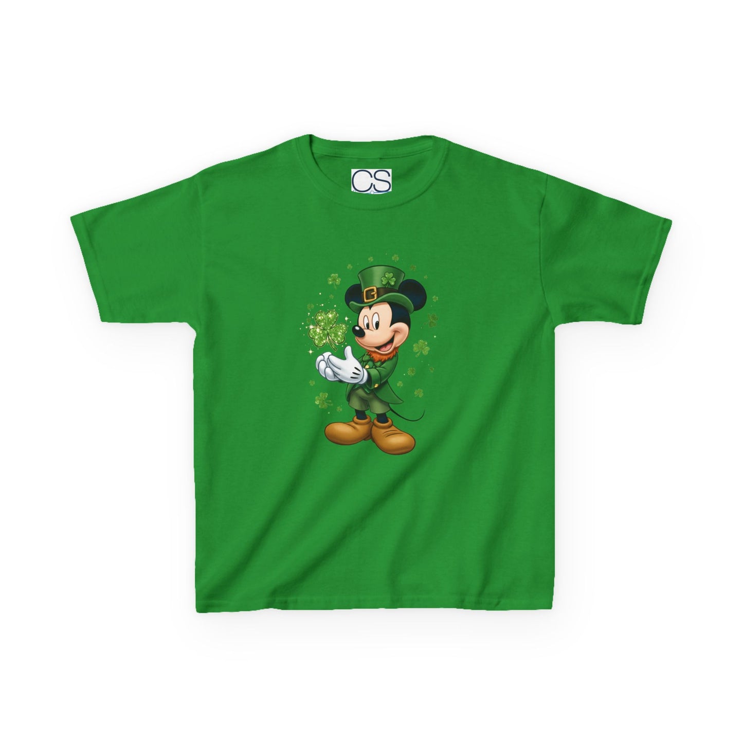 Bring Disney magic to St. Patrick's Day with this adorable kids' t-shirt featuring Mickey Mouse as a lucky leprechaun. Made from soft cotton, this white t-shirt showcases Mickey in traditional Irish attire, holding a shamrock amid falling clovers. Perfect for parades, parties, and spreading Irish cheer.