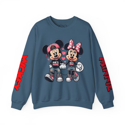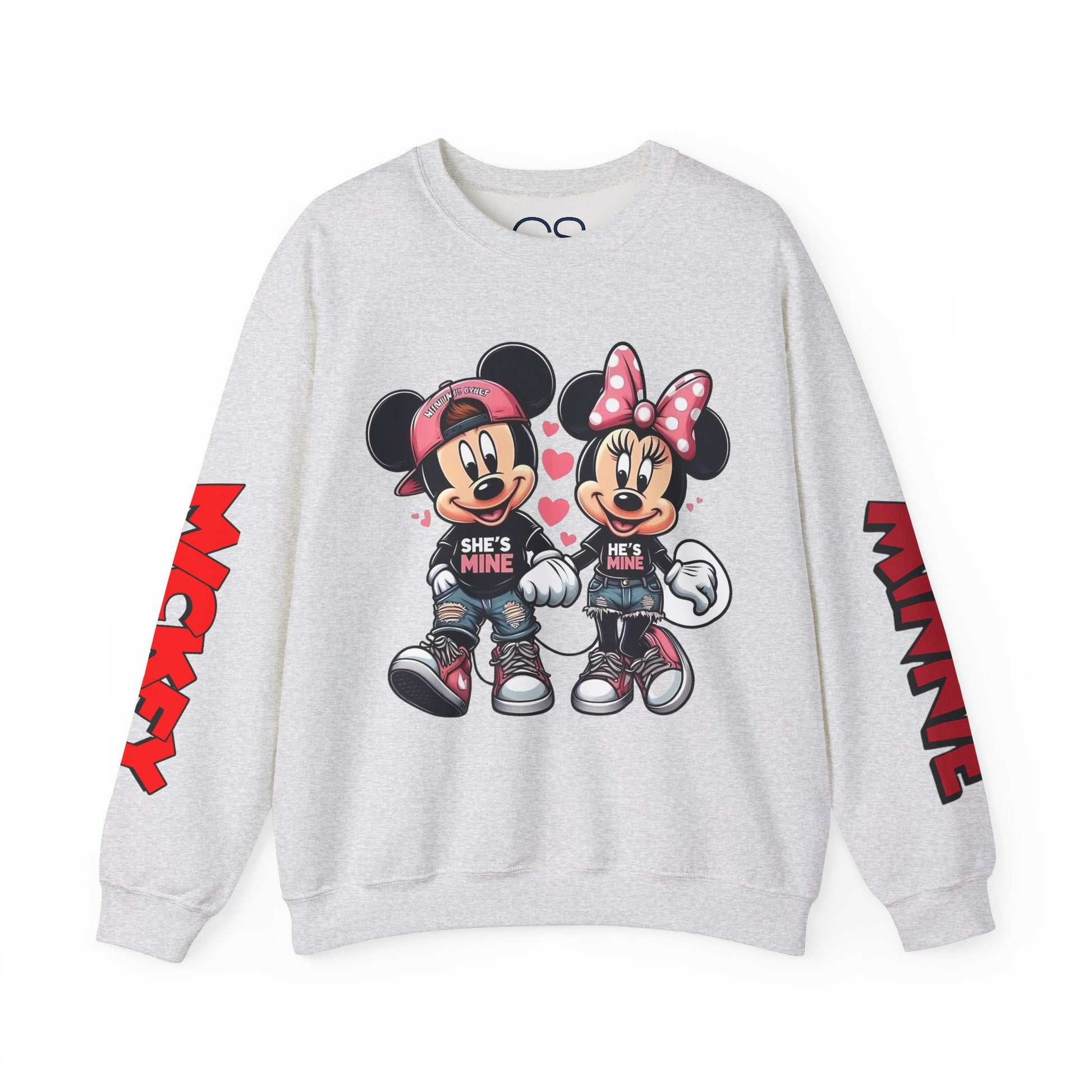 Show off your love in style with this adorable Mickey & Minnie couples sweatshirt! Featuring the legendary duo in trendy streetwear, this matching crewneck is perfect for couples who love Disney and fashion. With bold "She’s Mine" and "He’s Mine" graphics, this sweatshirt makes a playful statement while keeping you warm and cozy. The soft cotton-blend fabric ensures ultimate comfort, and the stylish sleeve prints add a unique touch. Whether for Valentine’s Day, anniversaries, or just because, this sweatshirt is the perfect way to match with your special someone!