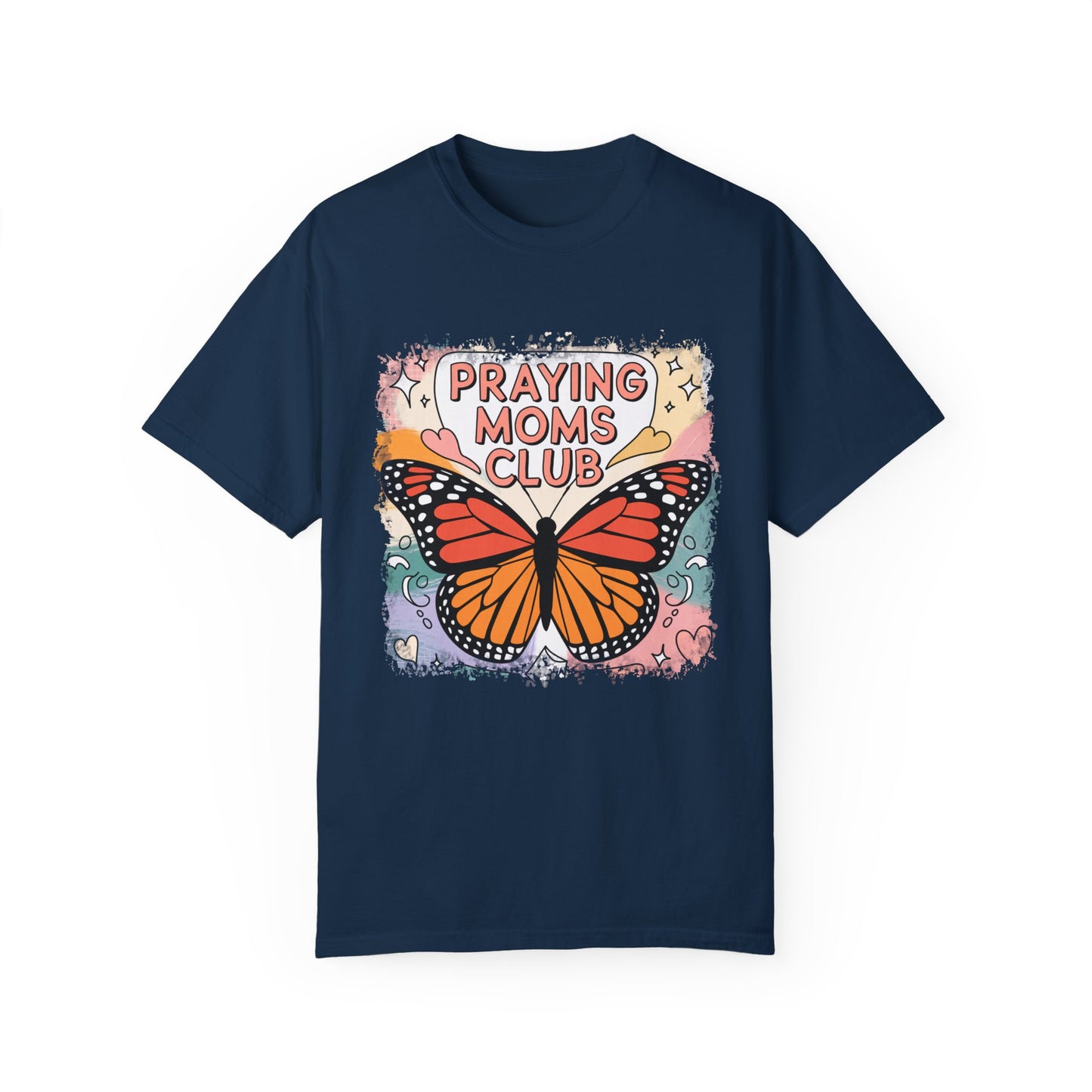 Celebrate the powerful combination of faith and motherhood with our stunning "Praying Moms Club" t-shirt. This inspirational design features a vibrant monarch butterfly—a symbol of transformation, hope, and resilience—set against a beautiful, colorful background that reflects the joy and vibrancy of a mother's prayers.