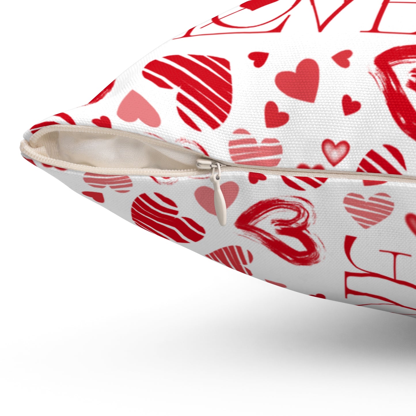 Elevate the look and comfort of any space with our Spun Polyester Square Pillow. Adorned with a playful, all-over heart and love-themed pattern in vibrant shades of red, this pillow adds a touch of romantic flair to your decor. Crafted from premium polyester fabric, it offers plush, cozy softness that's perfect for snuggling up on the couch or bed. The durable construction and hidden zipper closure ensure long-lasting quality. Available in various sizes, this versatile accent piece coordinates beautifully with a variety of color schemes and design styles. Give your home an instant mood boost with the charming, heart-filled style of our Spun Polyester Square Pillow.